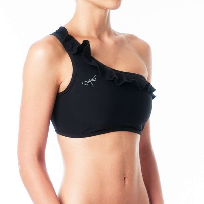 Wir haben den rechtsseitigen Sport-BH Carmen geschaffen. Dazu haben wir die Rüschen gegeben und so ist ein sehr elegantes und weibliches Rüschen-Design entstanden. Zugleich wird die Funktionsvielfalt und der Komfort des Modells bewahrt. Der BH Carmen mit den Rüschen bleibt an seiner Stelle auch bei dem intensivsten Training und überdeckt alles, was notwendig ist. Die Dragonfly-Stickerei auf der Vorderseite unterstreicht das perfekte Design der hochwertigen Bikram Yoga-Kleidung, Hot Yoga-Kleidung und Pole-Kleidung. Das Carmen Rüschen-Top ist wie alle unsere Tops und BHs doppellagig auf der Vorderseite.